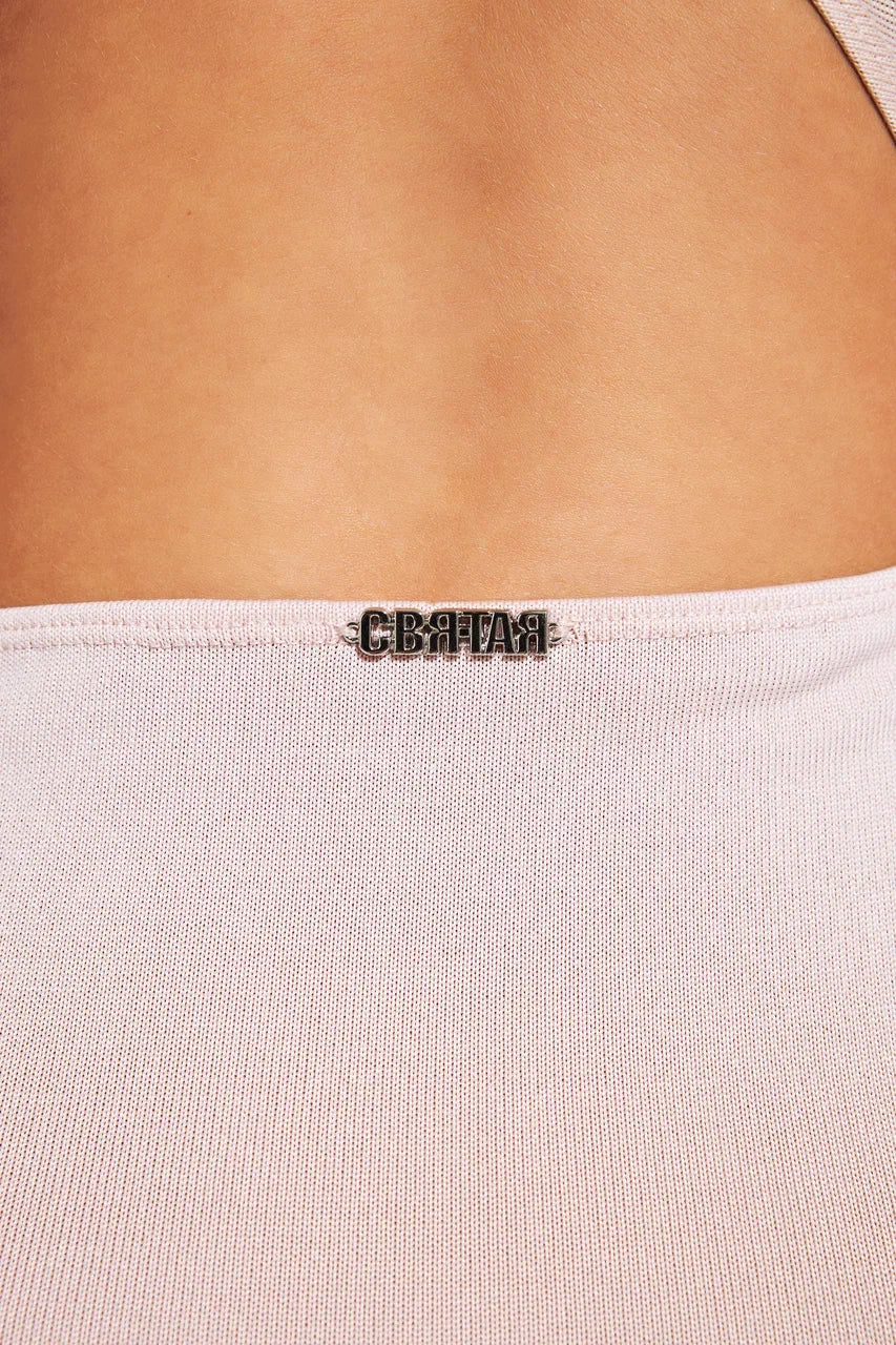 Sorgfältig platzierte, asymmetrische Ausschnitte sowohl vorne als auch hinten schenken dem Kleid zusätzliche Originalität und Modernität. Diese subtilen Details bringen einen einzigartigen Charme zur Geltung und unterstreichen die Eleganz und Raffinesse des Designs.
